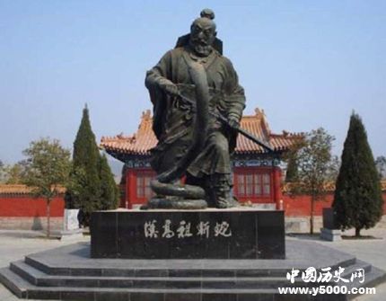 据说当晚,一行人乘着酒意乱蹿,突然撞见一条大蛇拦在路中,刘邦大喝道:“壮士行,何畏?”冲上去一剑把蛇斩为两段。后来有人再经过此地,见到一位老妇哀哀痛哭,问她原因,回答说:“我儿子是白帝之子,变做一条蛇卧在当地,结果被赤帝之子杀掉了。”这就是高祖斩白蛇起义的传说,所以后来五行学说昌盛了,称汉为“火德”,服饰尚赤。