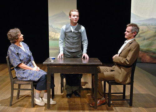 露伊斯说她怕他父亲。斐迪南说,他什么也不怕,即使那障碍像山岭,他就把它当作阶梯,攀过山头,飞奔到露伊斯的怀抱里。可是,露伊斯还是不能平静下来。