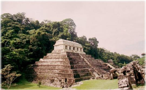 碑铭神庙帕伦克古城位于墨西哥尤卡坦半岛,属玛雅文化的遗存。碑铭神庙是帕伦克遗址最雄伟的建筑,它是一座金字塔、神殿、墓葬合一的建筑。神庙的主体是一座宏伟的金字塔,塔高10层,只比埃及金字塔矮一些,但它的形状不完全是锥形的,顶端有一个祭神的神殿。