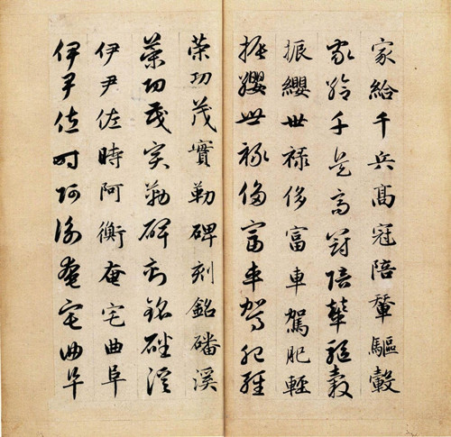明董其昌《画禅室随笔》说他学钟繇《宣示表》,“每用笔必曲折其笔,宛转回向,沉著收束,所谓当其下笔欲透纸背者”。他所写的《千字文》清何绍基说:“笔笔从空中来,从空中住,虽屋漏痕,犹不足以喻之”。我们细读他的墨迹《千字文》,看得出他用笔上藏头护尾,一波三折,含蓄而有韵律的意趣。董、何之说可谓精确、具体、恰当。