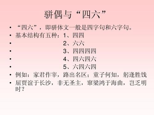骈文又称骈体文、骈俪文或骈偶文;中国古代以字句两两相对而成篇章的文体。骈体文与散文对称,因其常用四字句、六字句,故也称“四六文”或“骈四俪六”,全篇以双句(俪句、偶句)为主,讲究对仗的工整和声律的铿锵。