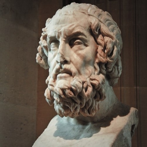 荷马(Ὅμηρος/Homer,约前9世纪—前8世纪),古希腊盲诗人。相传记述了公元前12~前11世纪特洛伊战争,以及关于海上冒险故事的古希腊长篇叙事代表作——史诗《伊利亚特》和《奥德赛》,即是他根据民间流传的短歌综合编写而成。