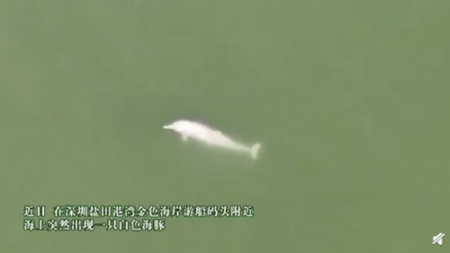 1月29日下午,在深圳盐田港湾金色海岸游船码头附近,海上突然出现一只白色海豚,时浮时沉,优雅跳跃,此情景令附近的市民十分欣喜,纷纷用手机拍下画面;当天下午,还有渔民向广东海洋大学深圳研究院专家报告,在大鹏湾海域也发现海豚。