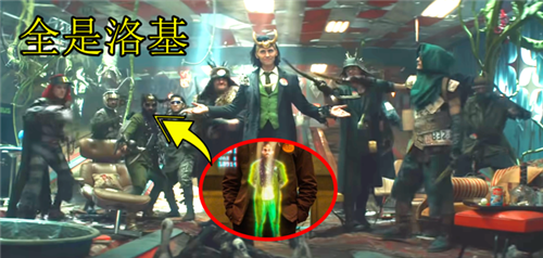 可以看到,镜头中大部分角色的头上都是有类似于王冠的装饰,这是洛基的经典造型,如果你觉得这是巧合,那么左侧第三个角色你注意到了吗?该角色的造型与莫比乌斯曾经曝出的那位骗子洛基几乎一模一样,王冠,加上已经出现的骗子洛基,那么我们是不是可以认为,在场的所有角色其实都是洛基,是不是很疯狂?仔细数一数,这里一共存在差不多10位洛基,有一些隐藏在后面不好发现,可能还有一些镜头中并没有展示,所以,至少可能有10位,也有可能会有一大群,真的是进“洛基窝”了。