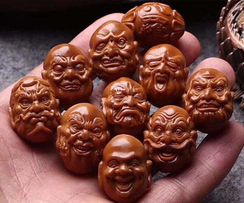 “十八罗汉”核桃雕佩挂于腰间,赏玩于案头,臆想着具有“最高果位”的罗汉们为你驱灭烦恼贪痴,替你争取衣食无忧,让你脱离生死轮回,便如佛光罩体一般,可以乐哉悠哉了。